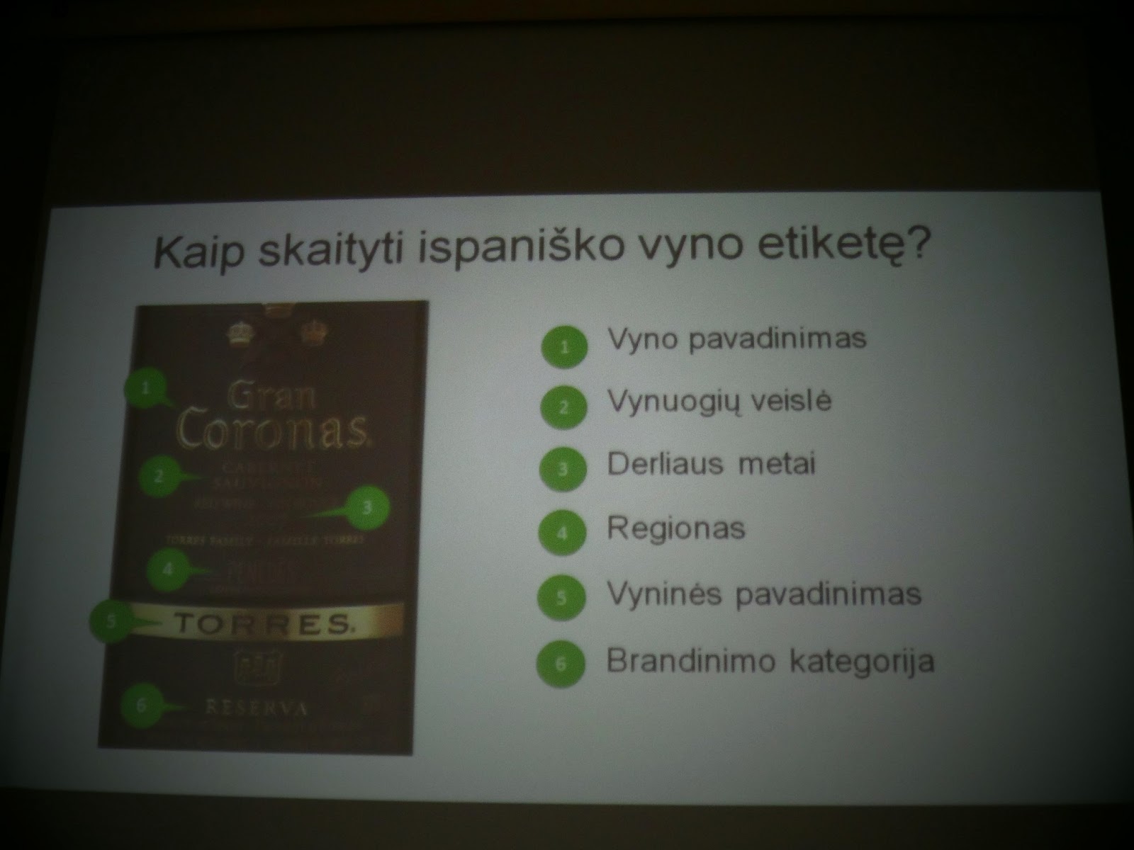 Paskaitą apie tai, kaip ant mūsų stalo atsiranda geriausi ispaniški vynai, skaitė Tadas Abišala, Lietuvos someljė asociacijos narys. Buvęs Vytauto Didžiojo universiteto studentas, šiandien puikus vyno ir vynininkystės ekspertas, pasakojo apie ispaniško vyno istoriją, kuri skaičiuoja jau trečią tūkstantmetį. T. Abišala paskaitos dalyvius supažindino su visais Ispanijos vynuogynų regionais, garsiausiomis vyno daryklomis, vyno ir vynuogių rūšimis, gaminimo bei brandinimo tradicijomis. Išdavė paslaptis, kaip išsirinkti norimą vyną, suprasti, kas parašyta ant vyno butelio etiketės ir kad saulėtosios Ispanijos vynai skirti mėgautis iškart. Kiekvienas šio renginio metu bent trumpam galėjo pasijusti tikru vyno ekspertu.