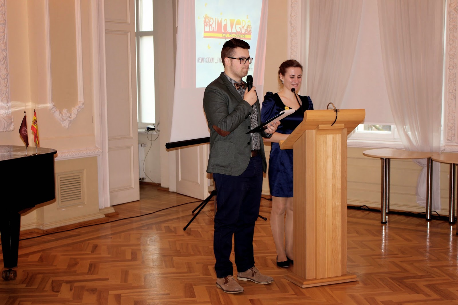 Jau ketvirtojo ispaniško pavasario oficiali atidarymo šventė vyko VDU Didžiojoje auloje. Sveikinimo žodžiais renginį pradėjo VDU plėtros prorektorė Natalija Mažeikienė. Profesorė džiaugėsi festivalio „Primavera en español“ organizatorių išradingumu ir teigė, kad tokie renginiai puikiai atskleidžia VDU puodelėjamas daugiakalbystės ir tarpkultūrinio bendravimo tradicijas. Ispanų kalbos studentų bei dėstytojų iniciatyva džiaugėsi ir VDU Užsienio kalbų instituto direktorės pavaduotoja Vilma Bijeikienė, supažindinusi atidarymo šventės dalyvius su ispanų kalbos istorija VDU. V. Bijeikienė pabrėžė, kad per visus 25-erius atkurtojo VDU metus ispanų kalba buvo viena iš populiariausių. Šios kalbos studentai norėjo mokytis visada, todėl ji buvo dėstoma kiekvieną semestrą. Iš viso VDU ispanų kalbos mokėsi ir puikių rezultatų pasiekė beveik 1500 studentų.